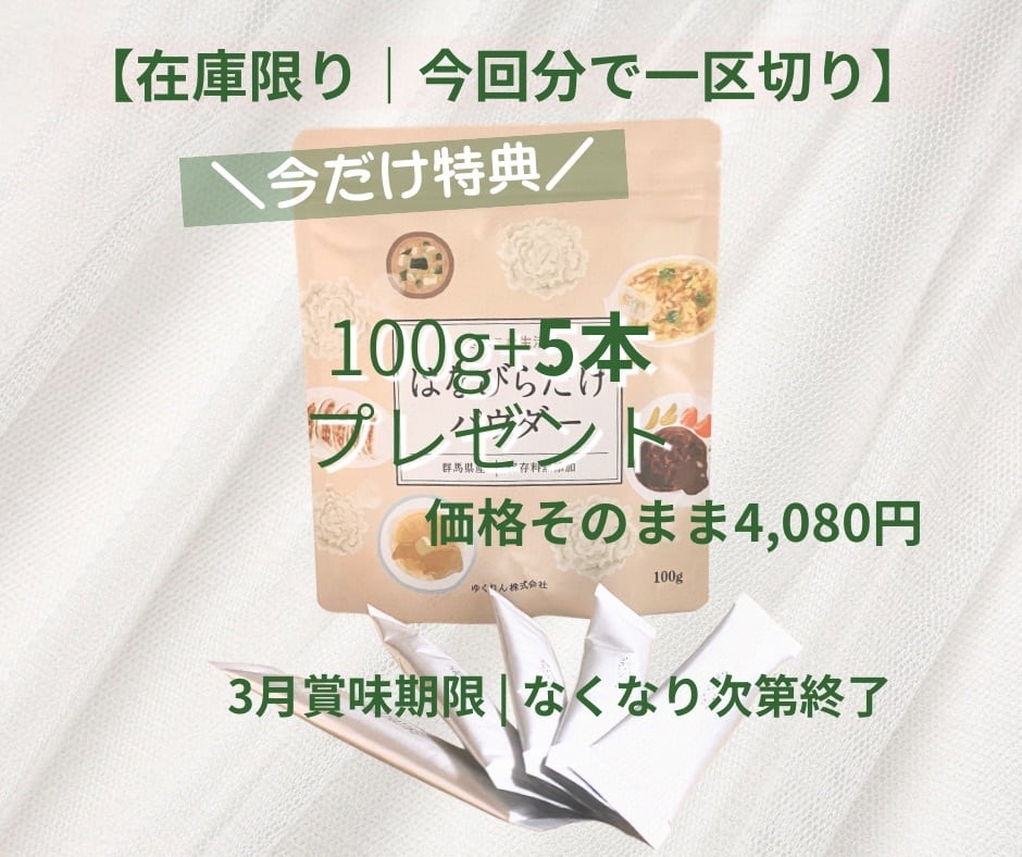 このはなびらたけパウダーは、この在庫をもって卒業します。